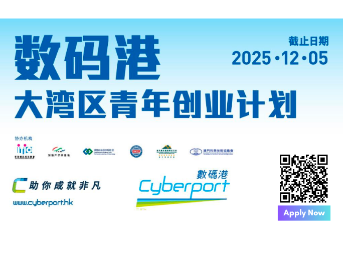 第一階段:數碼港大灣區青年創業計劃個人申請 [提交网上申请表格(申請日期:2025年9月中–12月5日)]