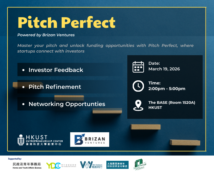 Pitch Perfect offers a unique opportunity for promising early-stage startups from HKUST to connect with leading investors and venture capitalists. This program provides startups with a platform to present their ideas and refine their pitches, receiving invaluable feedback from experienced investors while gaining insights into the fundraising process.