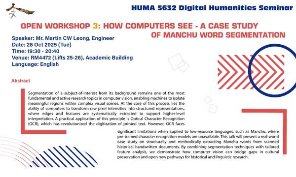 Segmentation of a subject-of-interest from its background remains one of the most fundamental and active research topics in computer vision, enabling machines to isolate meaningful regions within complex visual scenes. At the core of this process lies the ability of computers to transform raw pixel intensities into structured representations, where edges and features are systematically extracted to support higher-level interpretation. A practical application of this principle is Optical Character Recognition (OCR), which has revolutionized the digitization of printed text. However, OCR faces significant limitations when applied to low-resource languages, such as Manchu, where pre-trained character recognition models are unavailable. This talk will present a real-world case study on structurally and methodically extracting Manchu words from scanned historical handwritten documents. By combining segmentation techniques with tailored feature analysis, we demonstrate how computer vision can bridge gaps in cultural preservation and open new pathways for historical and linguistic research.